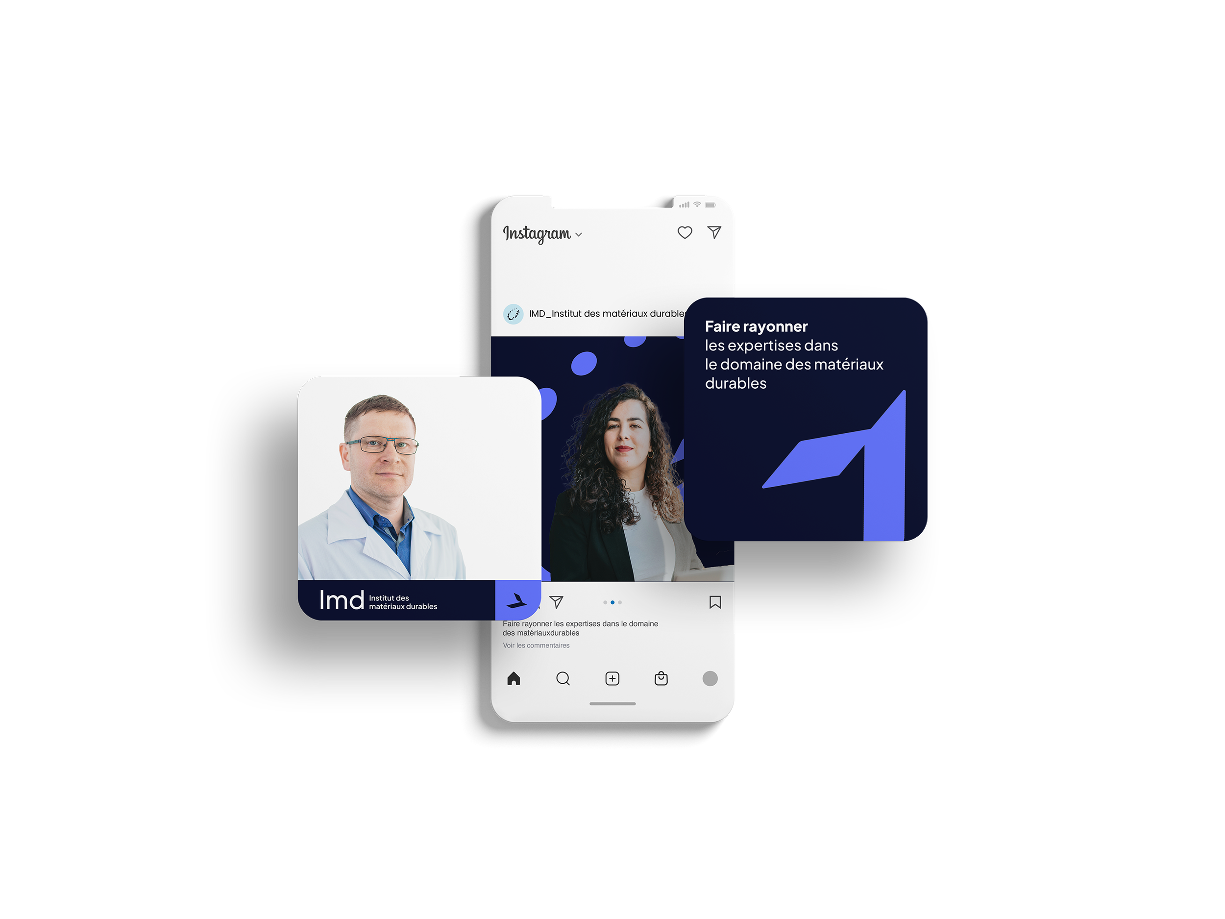 Création de l'image de marque complète pour le nouvel institut de l’université Laval : L’Institut des matériaux durables, dont la mission est de fédérer et soutenir les acteurs de la recherche du Québec en science des matériaux et des disciplines s’y intéressant pour faire face aux enjeux technologiques, sociétaux et environnementaux, et de positionner la province à l’avant-garde de l’innovation durable et responsable.